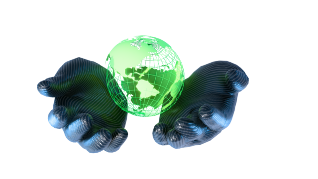 Blue Earth with global network connections, technology icon design vector illustration on a transparent background
