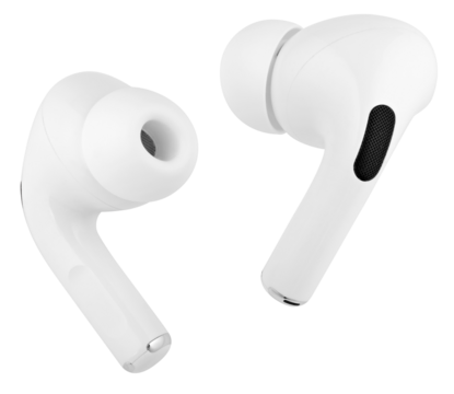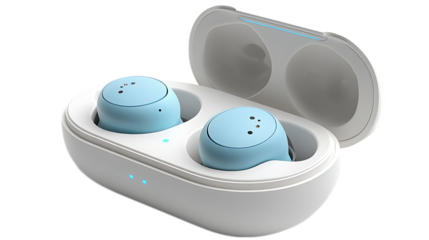 White wireless earbuds headphones audio technology music listening device for mobile phone and gadget accessories isolated on transparent background
