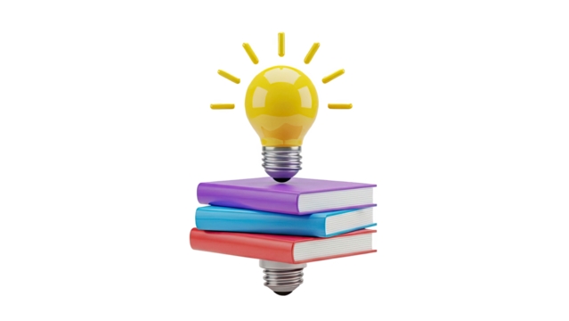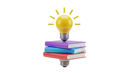 Lightbulb on Stack of Books Symbolizing Knowledge and Ideas