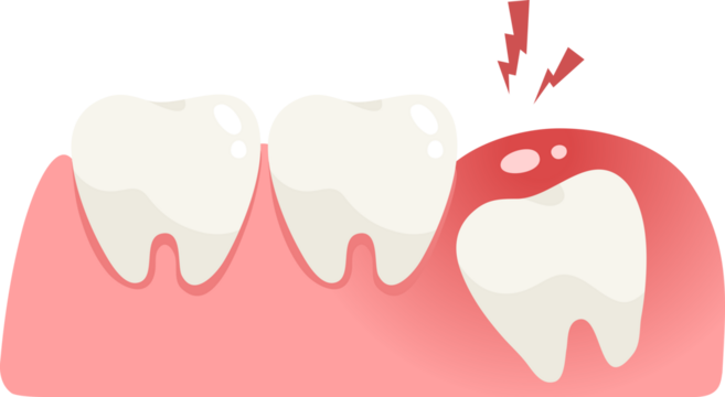 Illustration of pain cause of wisdom tooth under gum.