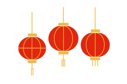Chinese lanterns hanging, celebrating lunar new year, traditional asian festival decoration, red and gold symbols
