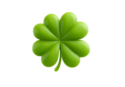 Isolated four-leaf clover, a St. Patrick's Day charm for good luck in spring and summer