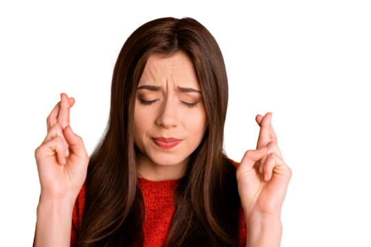 Man crossing fingers for luck hope wish prayer good fortune success anticipation and positive outcome on transparent background