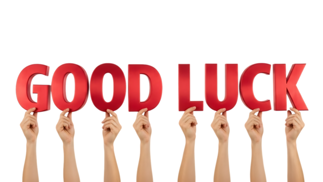 Wishing you luck text with hands on transparent background