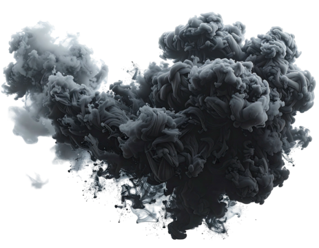 Dark grey smoke cloud explosion isolated on transparent background, abstract dynamic effect for design