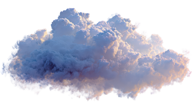 Fluffy cumulus cloud, pink and white hues, isolated against a stark black background