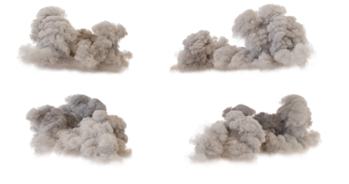 Smoke Set in Three Different Poses on Transparent Background for Atmospheric Effects, Fire Illustrations, or Abstract Designs