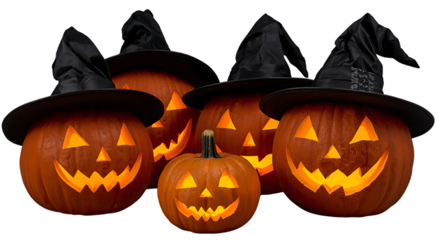 Halloween Pumpkins Wearing Witch Hats Decoration