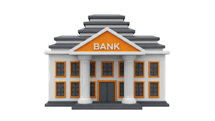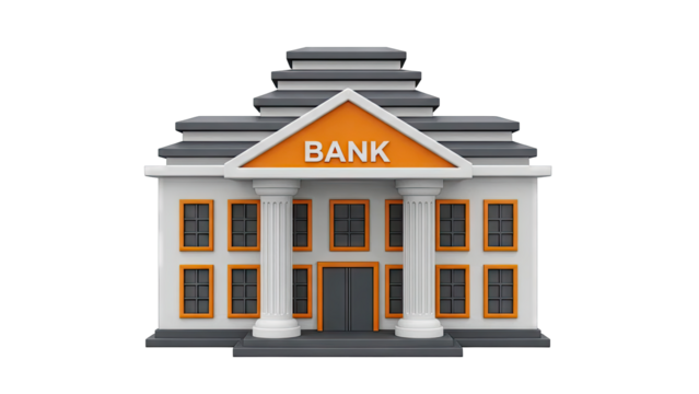 3D Render of a Bank Building with "BANK" Sign