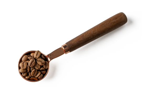 The coffee bean on spoon isolate on white, high resolution image take from 45MP camera