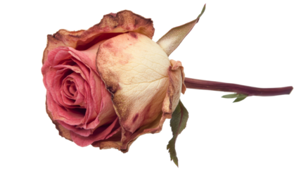 Withering pink rose isolated on transparent background symbolizing lost love