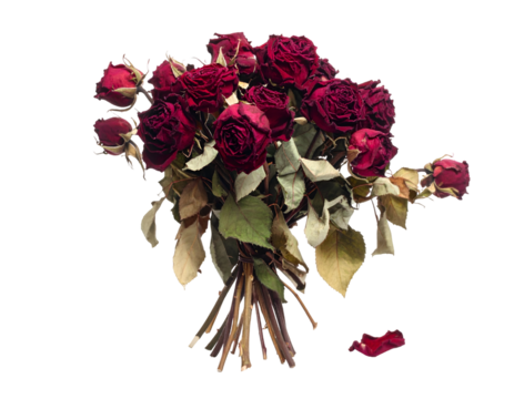 Dried Red Rose bouquet isolated on transparent png