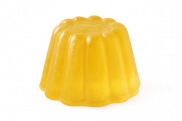 Bright yellow gelatin jiggling, showcasing translucent wobbling texture against clear surface