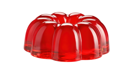 Red gelatin dessert in a bundt shape, a sweet and colorful treat with a wobbly texture, perfect for parties, kids' menus, or refreshing summer snacks, presented on a transparent background