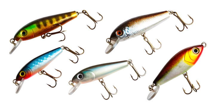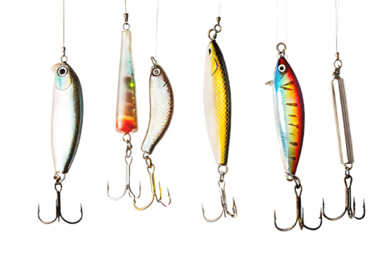 fishing lures isolated on white background, png, ai generated.