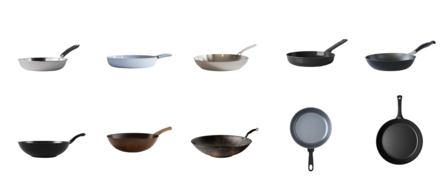 Set of pan wok mockup in 3d without backoground png for decoration.