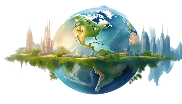 Flat wold map with continent silhouettes. Global word map outline on transparent background.