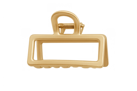 Gold hair claw clip, square fashion accessory for elegant hairstyles and beauty, on transparent background
