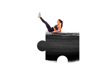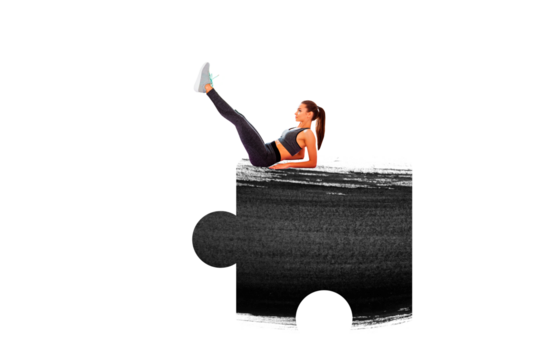 Smiling woman in athletic wear sitting cross-legged on transparent background