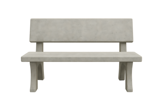 Concrete park bench isolated on transparent background