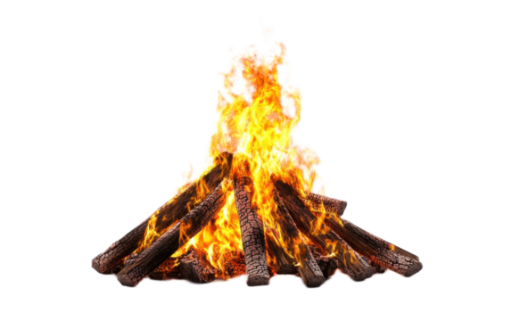 Bonfire isolated on white background, png