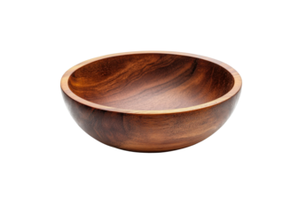 Empty wooden salad bowl with a beautiful natural grain pattern isolated on a transparent background
