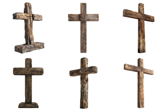 Rustic wooden cross with transparent background symbol of faith