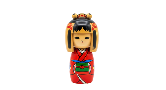 Isolated wooden Kokeshi doll, traditional Japanese toy, vintage souvenir from Asia, collectible