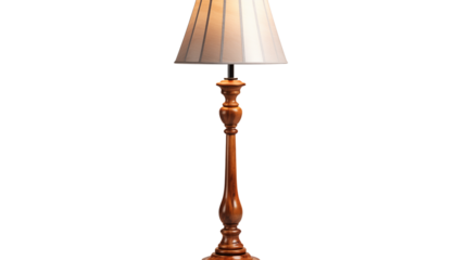 classic expensive wooden floor lamp, studio view, isolated on transparent background.