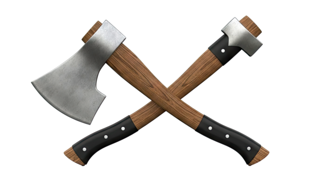 Ancient stone axe with wooden handle and leather strap isolated on transparent background