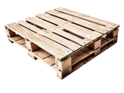 A wooden pallet isolated on a transparent or white background, perfect for showcasing shipping, warehouse, logistics, or storage-related concepts in a clean, professional design.