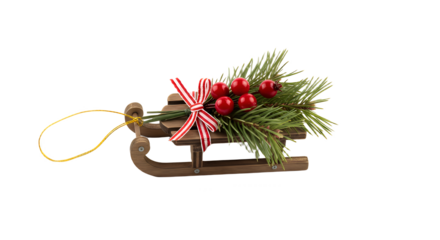 Vintage wooden sleigh isolated on transparent background, a charming christmas decoration, evoking nostalgic holiday memories and winter wonderland scenes