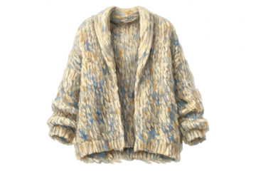 Isolated knitted wool cardigan sweater garment, vintage style clothing for fall and winter season