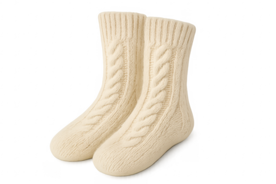 Isolated patterned sock knitwear, comfortable wool wear for winter season, cozy garment
