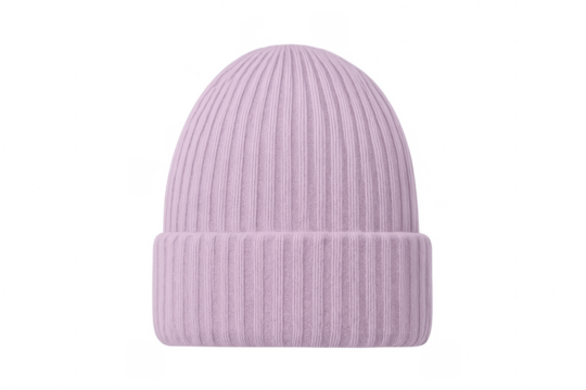 Close-up of a deep blue woolly hat with a vertical ribbed texture and a turned-up cuff, a comfortable winter head covering, isolated on transparent background