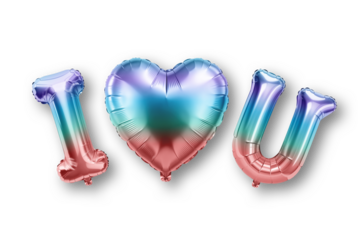 Rainbow color Foil Balloons spelling the word "I Love You" with heart isolated on a transparent background. PNG. High resolution. Concept of love and celebration. Valentine's Day.