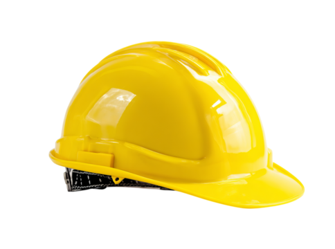 Bright yellow hard hat safety helmet construction worker, Isolated On Transparent Background, Png Cut Out