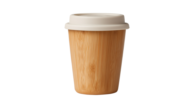 Environmentally friendly coffee cup with bamboo texture ideal for work life balance routine