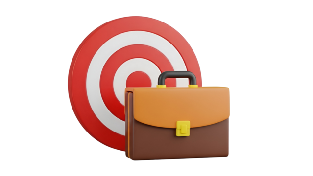 A 3d render of a briefcase and a target representing business objectives and career goals