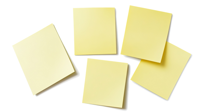 Yellow Sticky Notes Arranged on a Transparent Background Generative AI