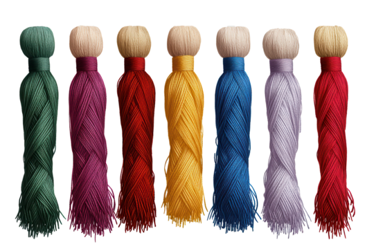 Colorful embroidery threads lined up in various shades displayed on a white background for crafting and sewing projects in a creative workspace