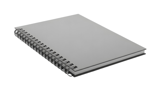 3D Blank Spiral Notebook Mockup on transparent background