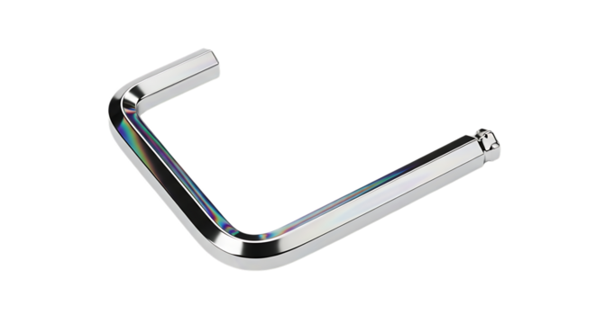 Shiny Hexagonal Allen Wrench Tool, Rainbow Refractions, cutout, PNG isolated on white or transparent background