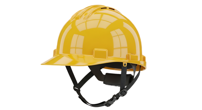 Yellow hard hat representing safety, construction, and engineering industry work on transparent background
