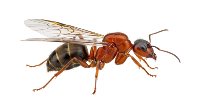 Isolated Queen ant, beautiful insect with wings on a neutral backdrop – macro detail shot