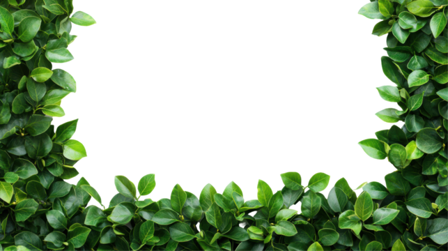 A vibrant frame of green leaves on a transparent background, perfect for various design projects cut out transparent isolated PNG