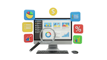 Digital workflow productivity icons on transparent background