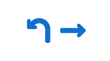 Blue curved arrow turning back followed by a straight right arrow symbol