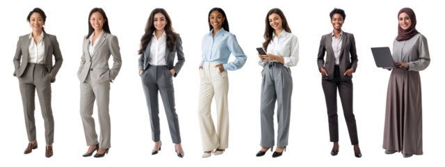 Diverse businesswomen full body png cut out element set