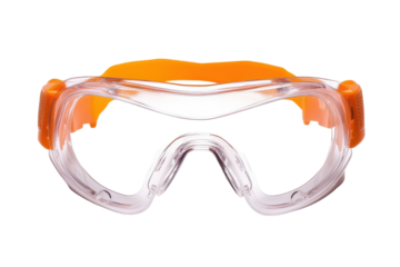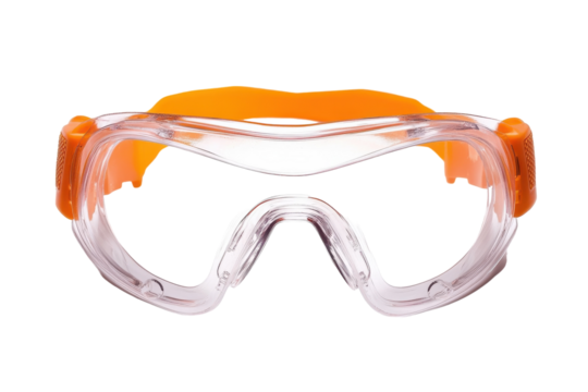 Protective safety goggles with orange straps ideal for various hazardous environments
